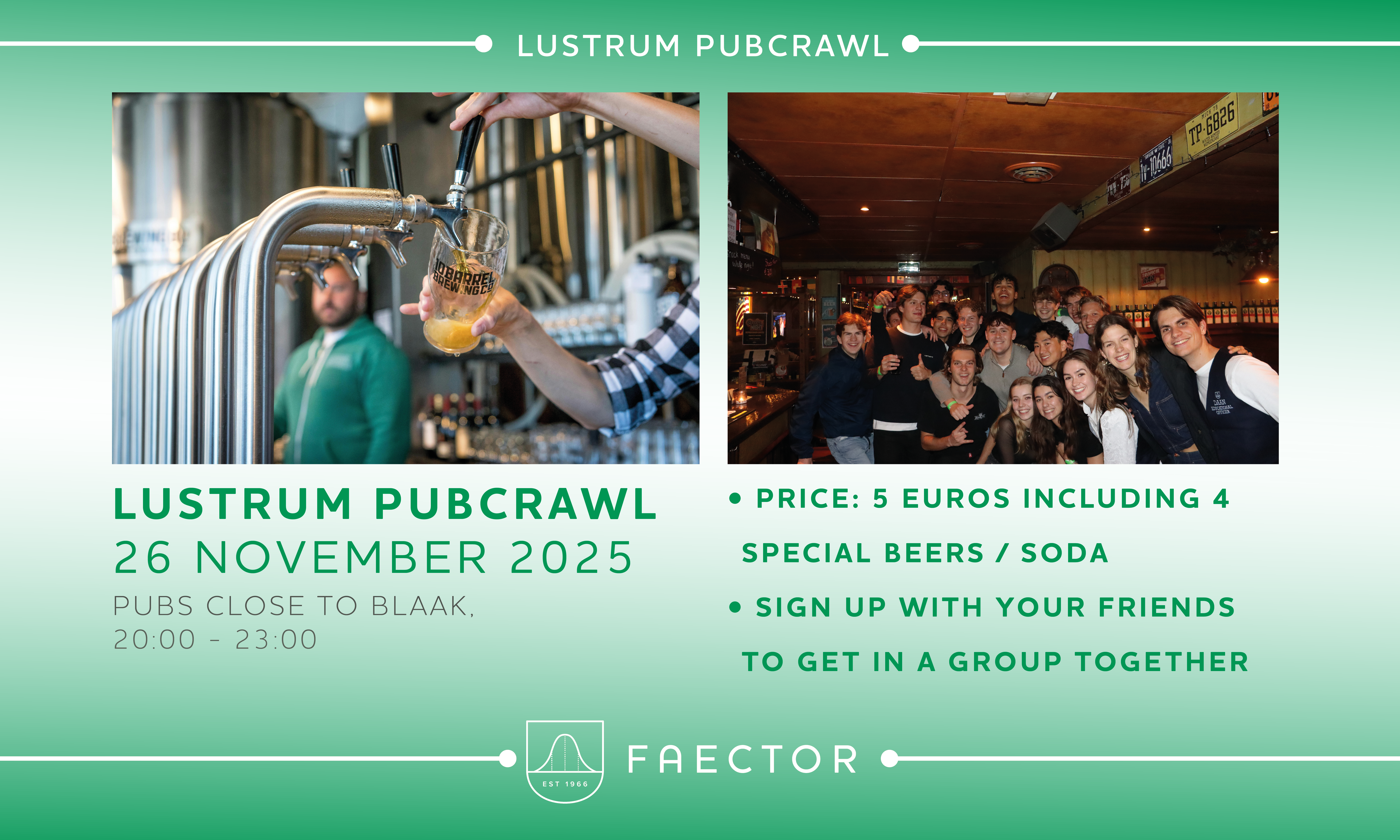 After the great succes of the Lustrum Opening Dinner it is time for our next Lustrum event: the Pub Crawl!