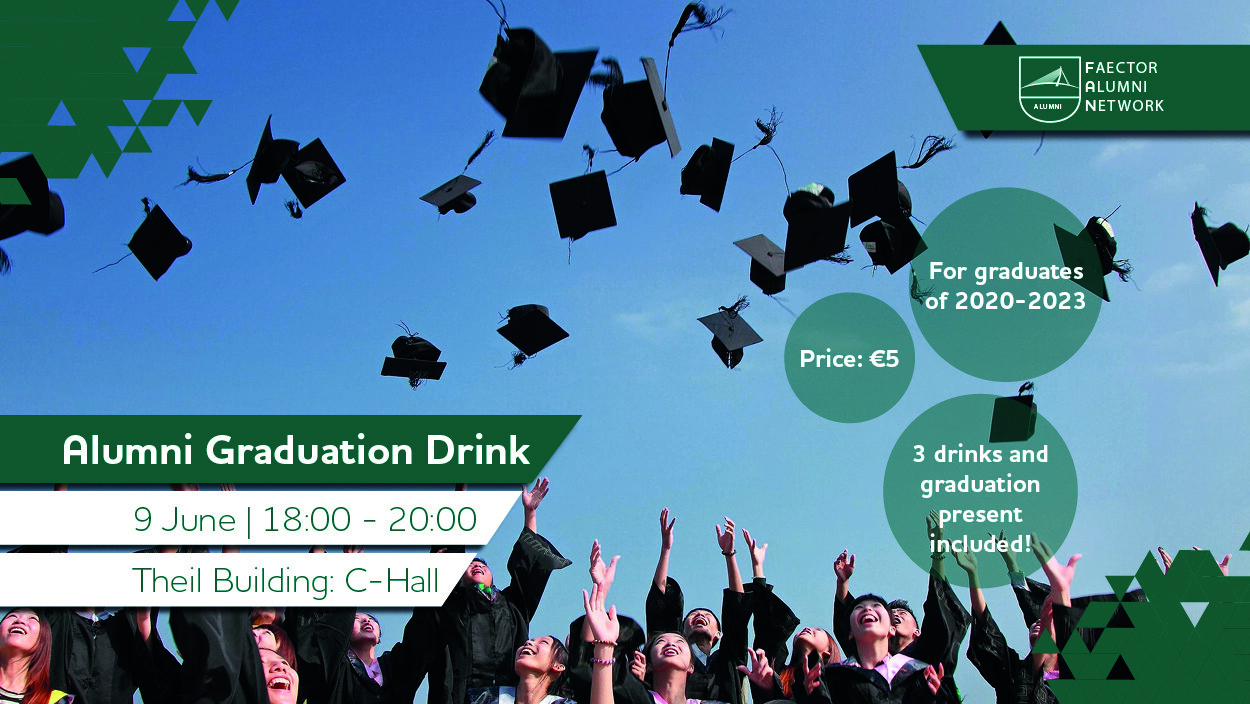 Everyone who graduated in the last 3 years or is about to graduate this year is welcome to celebrate with us. For only 5 euros you get 3 free drinks, some snacks, and a special graduation present. Ask all your friends, and we hope to see you there!