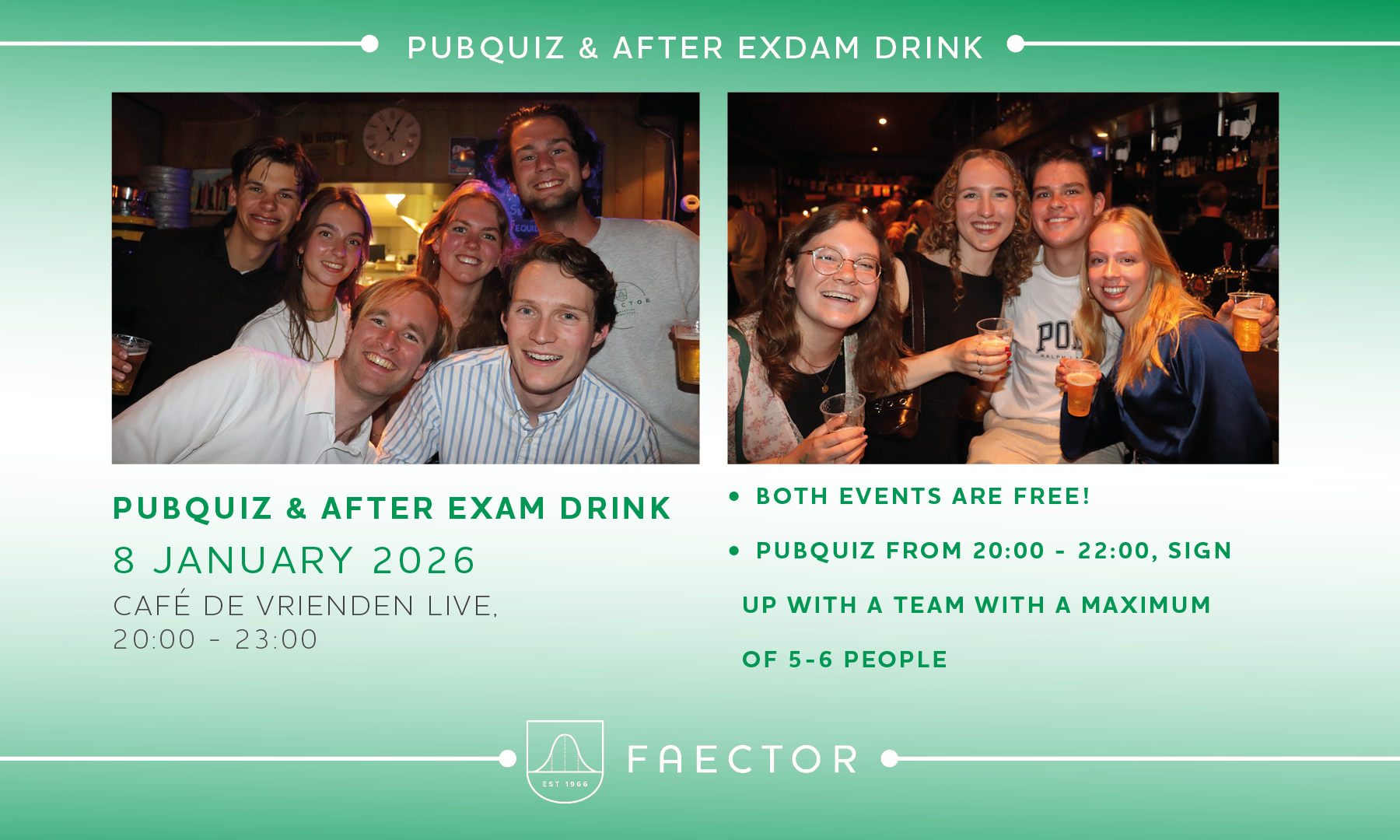 It will take place at Café de Vrienden Live from 20:00 to 22:00, right before the After Exam Drink. It’s the perfect way to warm up for the party and to test your trivia skills.