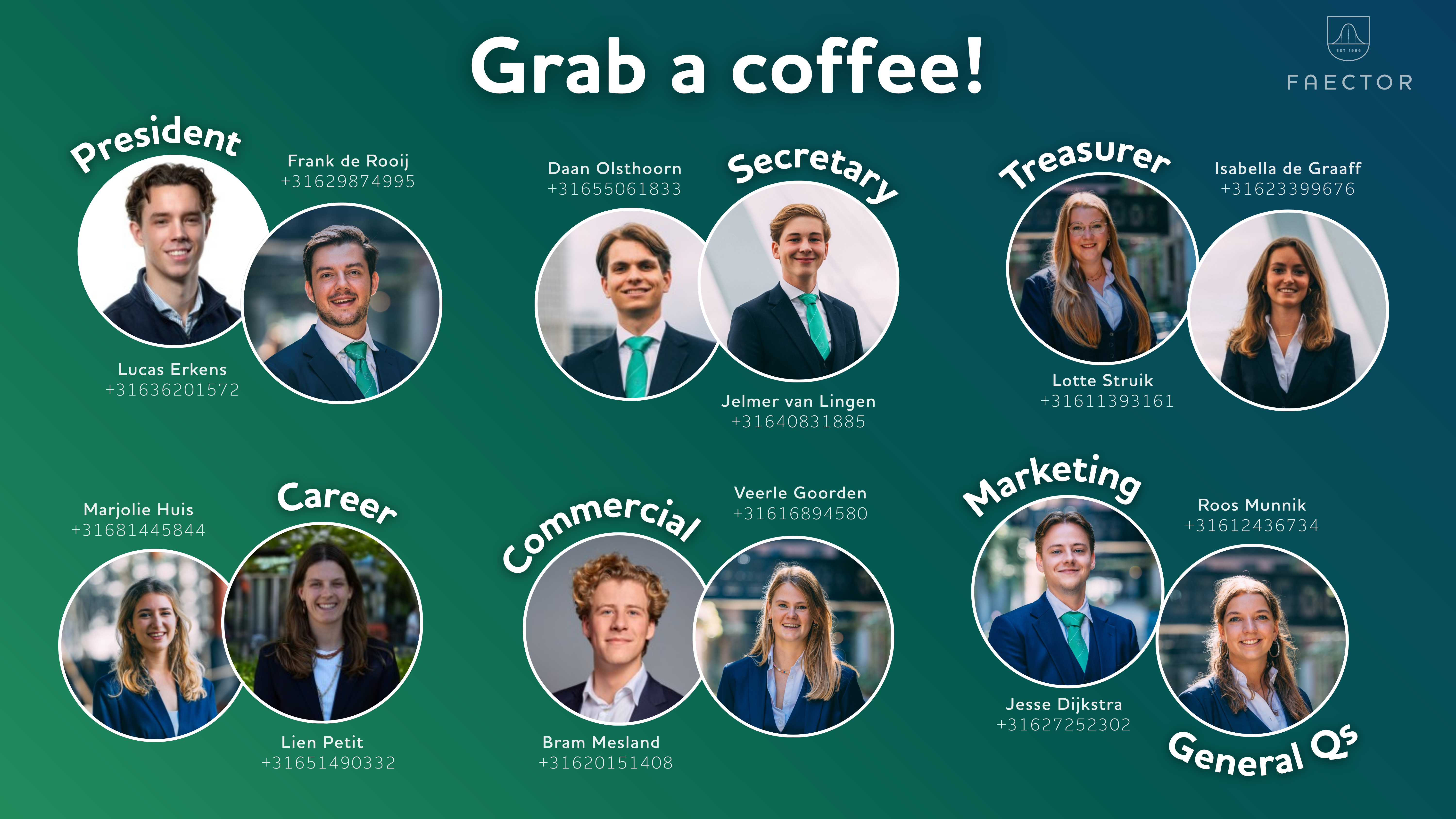 Whether you are looking to organize flagship events, manage external relations, or oversee the strategic direction of the association, dedicating a year to FAECTOR guarantees unforgettable memories and lifelong friendships. This is your chance to step out of your comfort zone, leave a lasting mark on our community, and experience the most rewarding challenge of your student life.